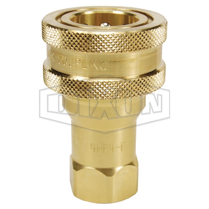 Dixon® ISO-B Poppet Interchange Valve Coupler, H Series, Connection Type 1: Quick Disconnect, Connection Size 1: 3/4 in, Connection Type 2: BSPP, Gender 2: Female, Connection Size 2: 3/4 in, Thread Size 2: 3/4-14, Hex Size: 1-5/16 in, 2000 psi, Brass, Dimensions: 2.22 in OD x 3.55 in L, Dimension Standards: ISO 7241 Series B, -40 to 250 deg F