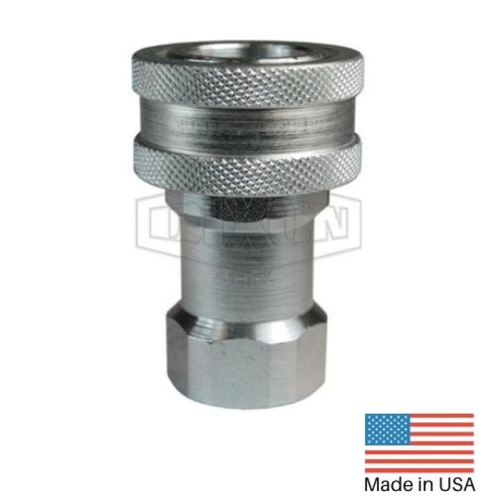 Dixon® ISO-B Mill Slide Gate Coupler, H Series, Connection Type 1: Quick Disconnect, Connection Size 1: 1/2 in, Connection Type 2: NPTF, Gender 2: Female, Connection Size 2: 1/2 in, Thread Size 2: 1/2-14, Hex Size: 1-1/16 in, 4000 psi, Steel, Finish: Trivalent Chrome-Plated, Dimensions: 1.86 in OD x 2.86 in L, Dimension Standards: ISO 7241 Series B, -40 to 250 deg F
