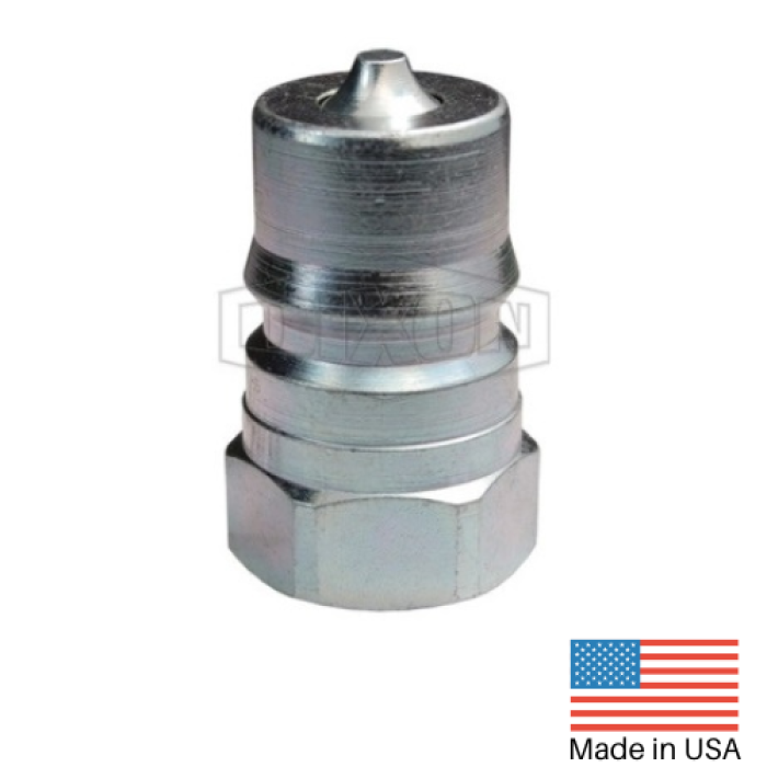 Dixon® ISO-B Mill Slide Gate Plug, H Series, Connection Type 1: Quick Disconnect, Connection Size 1: 1/2 in, Connection Type 2: NPTF, Gender 2: Female, Connection Size 2: 1/2 in, Thread Size 2: 1/2-14, Hex Size: 1-1/16 in, 4000 psi, Steel, Finish: Trivalent Chrome-Plated, Dimensions: 1.17 in OD x 1.94 in L, Dimension Standards: ISO 7241 Series B, -40 to 250 deg F
