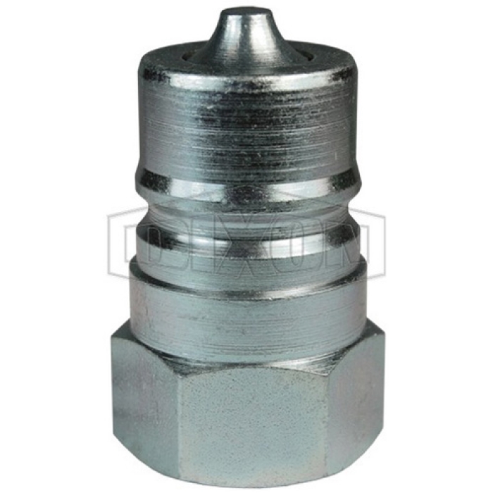 Dixon® ISO-A Interchange Plug, K Series, Connection Type 1: Quick Disconnect, Connection Size 1: 3/4 in, Connection Type 2: BSPP, Gender 2: Female, Connection Size 2: 3/4 in, Thread Size 2: 3/4-14, Hex Size: 1-5/16 in, 4000 psi, Steel, Finish: Trivalent Chrome-Plated, Dimensions: 1.44 in OD x 2.43 in L, -40 to 250 deg F