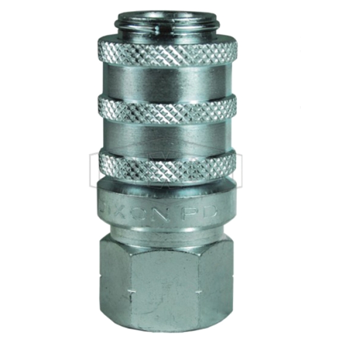 Dixon® Diagnostic Coupler, PD Series, Connection Type 1: Quick Disconnect, Connection Size 1: 1/8 in, Connection Type 2: NPT, Gender 2: Female, Connection Size 2: 1/4 in, Thread Size 2: 1/4-18, Hex Size: 21 mm, 6000 psi, Steel, Finish: Trivalent Chrome-Plated, Dimensions: 2.13 in L, -40 to 250 deg F