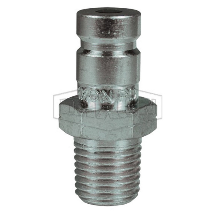 Dixon® Diagnostic Plug, PD Series, Connection Type 1: Quick Disconnect, Connection Size 1: 1/8 in, Connection Type 2: NPT, Gender 2: Male, Connection Size 2: 1/8 in, Thread Size 2: 1/8-27, Hex Size: 17 mm, 6000 psi, Steel, Finish: Trivalent Chrome-Plated, Dimensions: 0.76 in Dia x 1.98 in L, -40 to 250 deg F, For Use With: PD Series Quick Disconnect Diagnostic Interchange Hydraulic Couplings