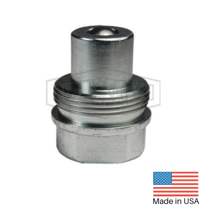 Dixon® 10K Ball Plug, T Series, Connection Type 1: Quick Disconnect, Connection Size 1: 3/8 in, Connection Type 2: NPTF, Gender 2: Female, Connection Size 2: 3/8 in, Thread Size 2: 3/8-18, Hex Size: 1-1/4 in, 10000 psi, 316 Stainless Steel, Dimensions: 1.35 in OD x 1.56 in L, -40 to 250 deg F