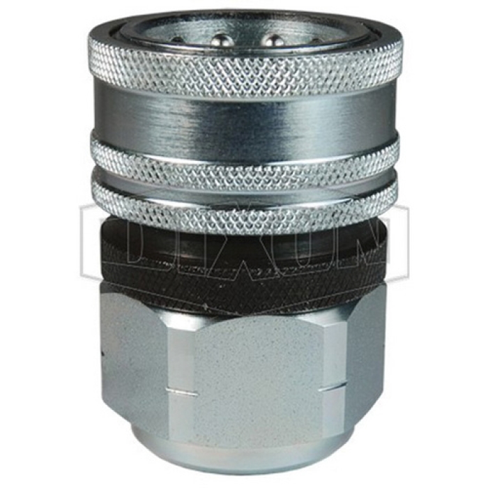 Dixon® Tema European Interchange Valved Coupler, TR Series, Connection Type 1: Quick Disconnect, Connection Size 1: 3/4 in, Connection Type 2: BSPP, Gender 2: Female, Connection Size 2: 3/4 in, Thread Size 2: 3/4-14, 4000 psi, Steel, Finish: Trivalent Chrome-Plated, Dimensions: 2.05 in OD x 3.35 in L, -40 to 250 deg F