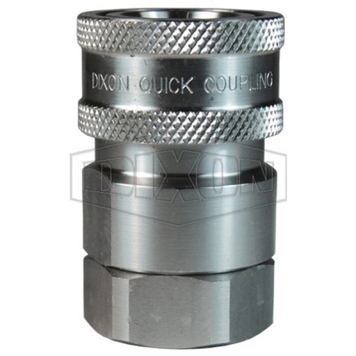 Dixon® Snap-Tite H/IH Interchange Valved Coupler, V Series, Connection Type 1: Quick Disconnect, Connection Size 1: 1-1/4 in, Connection Type 2: NPTF, Gender 2: Female, Connection Size 2: 1-1/4 in, Thread Size 2: 1-1/4-11-1/2, Hex Size: 2 in, 1500 psi, 316 Stainless Steel, Dimensions: 2.19 in OD x 3.54 in L, -40 to 250 deg F