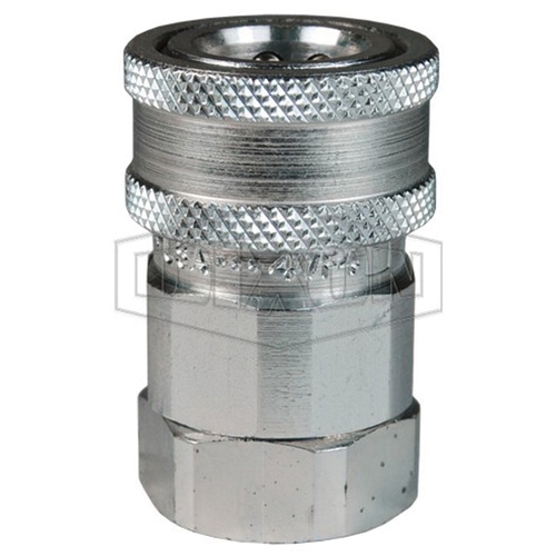 Dixon® Snap-Tite H/IH Interchange Valved Coupler, V Series, Connection Type 1: Quick Disconnect, Connection Size 1: 1-1/4 in, Connection Type 2: NPTF, Gender 2: Female, Connection Size 2: 1-1/4 in, Thread Size 2: 1-1/4-11-1/2, Hex Size: 2 in, 1750 psi, Steel, Finish: Trivalent Chrome-Plated, Dimensions: 2.19 in OD x 3.54 in L, -40 to 250 deg F