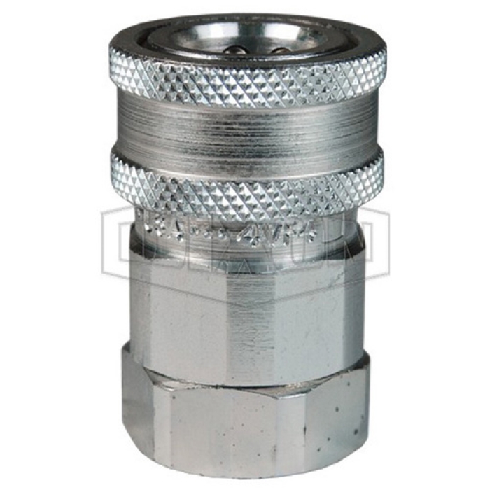 General-purpose hydraulic quick-connect provides superior flow characteristics for a variety of applications Machined components are manufactured using solid bar stock Stainless steel balls, retaining rings and spring maximize corrosion resistance and extend service life Steel componentry is plated using RoHS compliant trivalent chrome Steel coupler sleeves are hardened to resist deformation and maximize service life Tubular TV valves are constructed from steel bar stock and are designed for optimum performance in pneumatic applications Nitrile (Buna-N) seals are standard All couplers incorporate a PTFE anti-extrusion ring to protect the seal components from dynamic impulse damage Valve seals are crimped in place to maintain integrity during excessive flow conditions and pressurized connection Interchangeable to MIL-C-51234 Interchangeable with Snap-Tite H/IH Series and Faster TNV