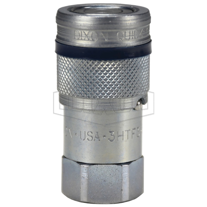 Dixon® Correct Connect™ Flushface Interchange Coupler, HT Series, Connection Type 1: Quick Disconnect, Connection Size 1: 3/8 in, Connection Type 2: NPTF, Gender 2: Female, Connection Size 2: 3/8 in, Thread Size 2: 3/8-18, 5000 psi, Steel, Finish: Trivalent Chrome-Plated, Dimensions: 2-1/2 in L, -40 to 250 deg F