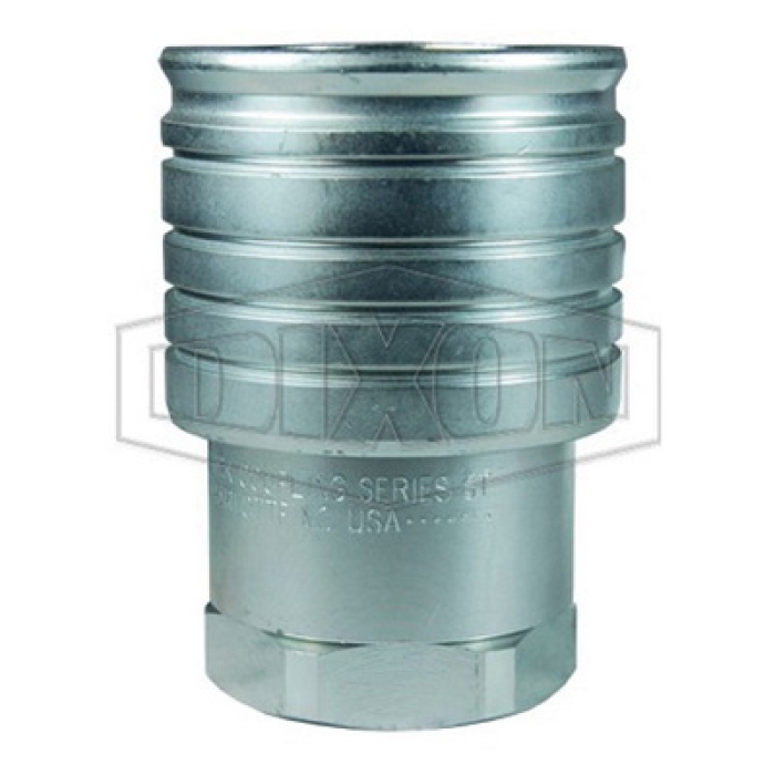 Dixon® Snap-Tite 71 Interchange Coupler, ST Series, Connection Type 1: Quick Disconnect, Connection Size 1: 1/4 in, Connection Type 2: NPTF, Gender 2: Female, Connection Size 2: 1/4 in, Thread Size 2: 1/4-18, Hex Size: 15/16 in, 10000 psi, Steel, Finish: Trivalent Chrome-Plated, Dimensions: 1.23 in OD x 1.96 in L, -40 to 250 deg F