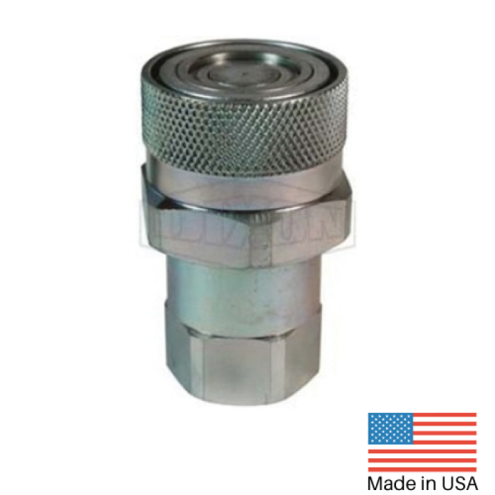 Two-stage valving to protect critical sealing components during pressurized connection and disconnection Posi-Lock valve system secures valving during surge-flow conditions to prevent high velocity damage No-spill, flush face valve minimizes air inclusion during connection and spillage during disconnection Threaded design eliminates premature wear or brinelling commonly found with locking ball designs when subjected to high-impulse pressures Machined components are manufactured using solid high-strength steel bar stock Stainless steel retaining rings and springs maximize corrosion resistance and extend service life Steel componentry is plated using RoHS compliant zinc nickel for superior corrosion resistance Valve stems have molded polyurethane seals, with a temperature range of -65 to 212 deg F Ancillary coupler seals are nitrile (Buna-N), with a temperature range of -40 to 250 deg F TPC-ET anti-extrusion ring protects main coupling valve seal from dynamic impulse pressure damage Interchangeable with Stucchi® VEP-P/VEP-HD Series, DNP PST4/FSI Series, Voswinkel FT Series, Parker® FET Series and Holmbury® HFT Series