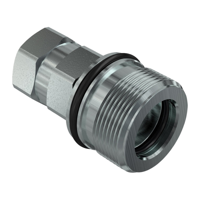 Faster Screw-To-Connect Coupling, Series: CVV, Connection Type 1: Quick Disconnect, Gender 1: Male, Connection Size 1: 3/4 in, Connection Type 2: ORB, Gender 2: Female, Connection Size 2: 1-1/16 in, Thread Size 2: 1-1/16-12, Hex Size: 1.61 in, 3916.019 psi, Steel, Dimensions: 1.89 in Dia x 3.39 in L, Dimension Standards: ISO 11926-1, -4 to 392 deg F