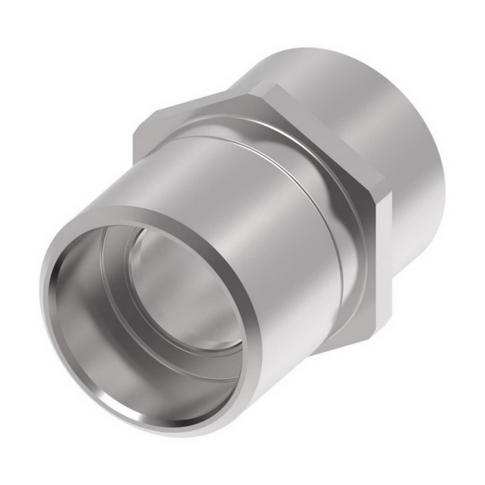 Aeroquip® Thread-To-Connect Coupling, 5100 Series, Connection Type 1: Quick Disconnect, Gender 1: Male, Connection Size 1: 1 in, Connection Type 2: NPT, Gender 2: Female, Connection Size 2: 1 in, Thread Size 2: 1-11-1/2, Hex Size: 39.6 in, 3000 psi, Brass, Finish: Plain, Dimensions: 3.55 in L x 1.74 in W