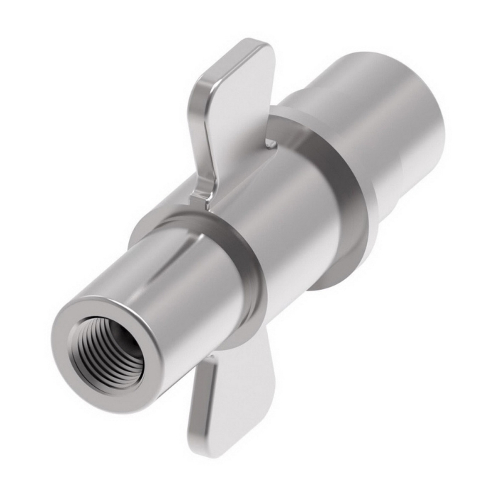 Aeroquip® Valved Coupling with Wing Nut, 5100 Series, Connection Type 1: Quick Disconnect, Connection Size 1: 1 in, Connection Type 2: NPT, Gender 2: Female, Connection Size 2: 1 in, Thread Size 2: 1-11-1/2, Hex Size: 1.56 x 1.44 in, 3000 psi, Brass, Finish: Zinc Trivalent-Plated, Dimensions: 5.98 in L x 2.18 in W x 4.38 in H, -40 to 250 deg F