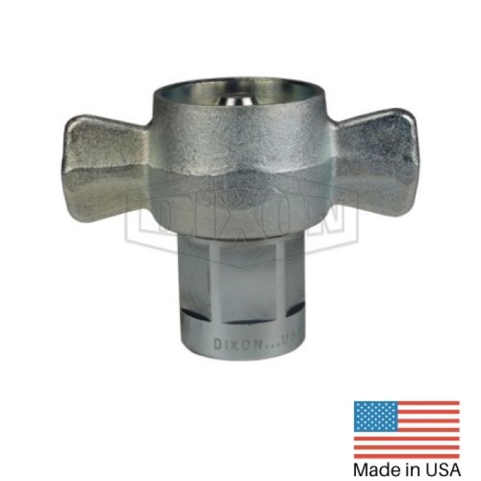 Dixon® Wingstyle Interchange Coupler, W Series, Connection Type 1: Quick Disconnect, Connection Size 1: 1 in, Connection Type 2: NPTF, Gender 2: Female, Connection Size 2: 1 in, Thread Size 2: 1-11-1/2, Hex Size: 1-15/32 in, 4000 psi, Steel, Finish: Trivalent Chrome-Plated, Dimensions: 4.49 in OD x 3.33 in L, -40 to 250 deg F