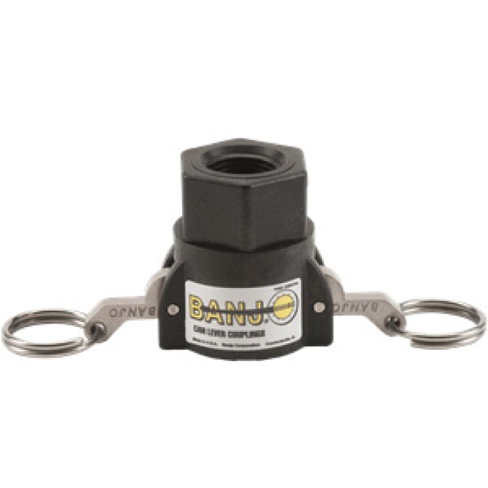 Banjo® Cam Lever Type D Coupling, Connection Type 1: Fitting, Gender 1: Female, Connection Size 1: 3/4 in, Connection Type 2: NPT, Gender 2: Female, Connection Size 2: 1/2 in, 300 psi, Glass Filled Polypropylene