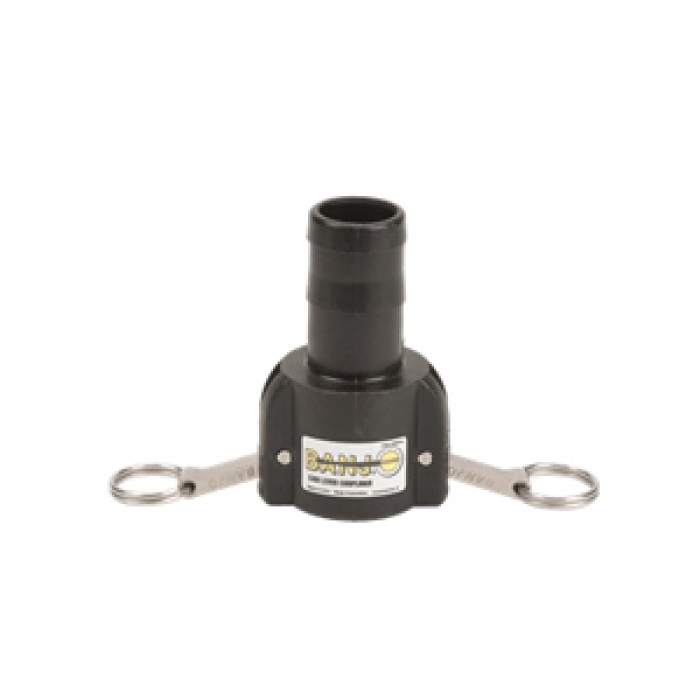 Banjo® Cam Lever Type C Coupling, Connection Type 1: Fitting, Gender 1: Female, Connection Size 1: 1 in, Connection Type 2: Hose Barb, Connection Size 2: 1-1/4 in, 300 psi, Polypropylene, Dimensions: 3-15/16 in L