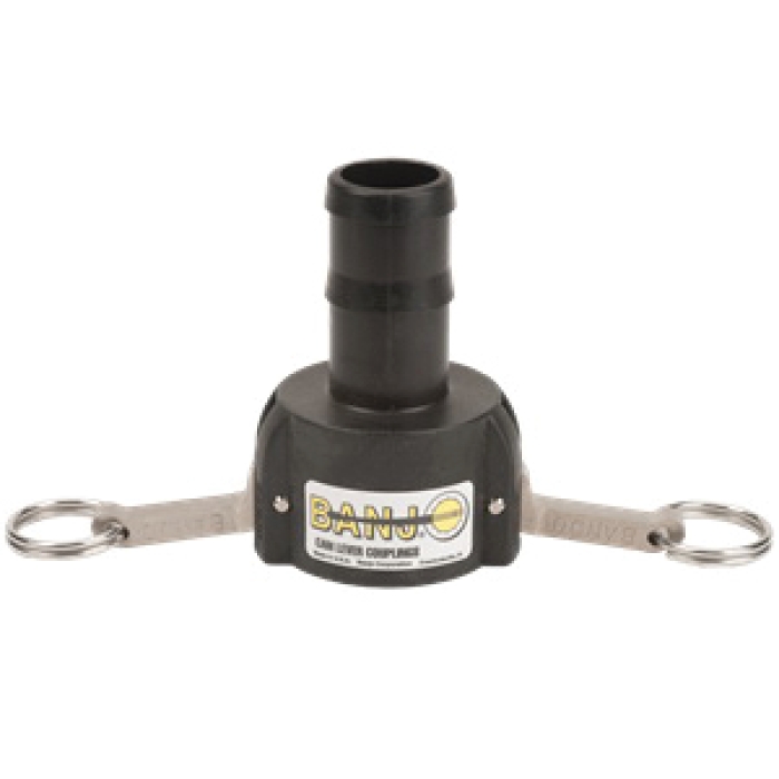 Banjo® Cam Lever Type C Coupling, Connection Type 1: Fitting, Gender 1: Female, Connection Size 1: 1-1/2 in, Connection Type 2: Hose Barb, Connection Size 2: 1-1/2 in, 300 psi, Polypropylene, Dimensions: 4-3/4 in L