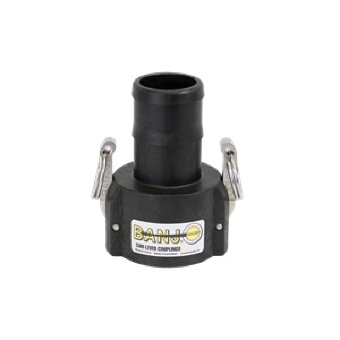 Banjo® Cam Lever Type C Coupling, Connection Type 1: Fitting, Gender 1: Female, Connection Size 1: 2 in, Connection Type 2: Hose Barb, Connection Size 2: 2 in, 225 psi, Polypropylene, Dimensions: 5-1/32 in L x 7-15/32 in W