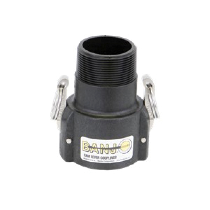 Banjo® Cam Lever Type B Coupling, Connection Type 1: Fitting, Gender 1: Female, Connection Size 1: 2 in, Connection Type 2: NPT, Gender 2: Male, Connection Size 2: 2 in, 200 psi, Polypropylene, Dimensions: 4-5/8 in L x 3-3/32 in W