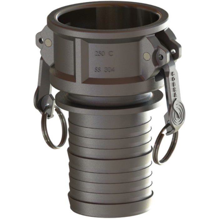 Campbell Fittings Cobra™ Cam and Groove Type C Standard Coupling, Connection Type 1: Fitting, Gender 1: Female, Connection Size 1: 2 in, Connection Type 2: NPT, Connection Size 2: 2 in, 250 psi, 304 Stainless Steel, 70 deg F, For Use With: Interlocking Ferrules, Sleeves or Preformed Bands