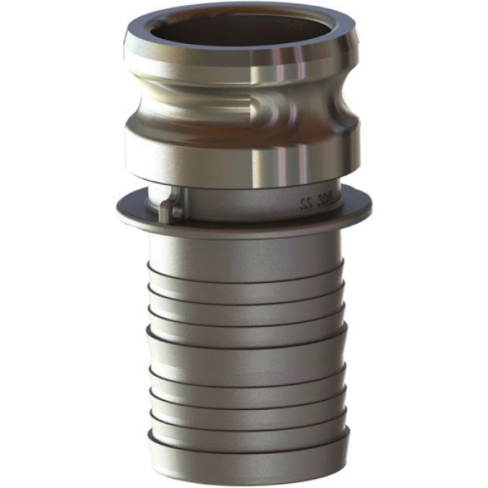 Campbell Fittings Cobra™ Cam and Groove Type E Standard Coupling, Connection Type 1: Fitting, Gender 1: Male, Connection Size 1: 2 in, Connection Type 2: Hose Stem, Connection Size 2: 2 in, 250 psi, 304 Stainless Steel, 70 deg F, For Use With: Interlocking Ferrules, Sleeves or Preformed Bands