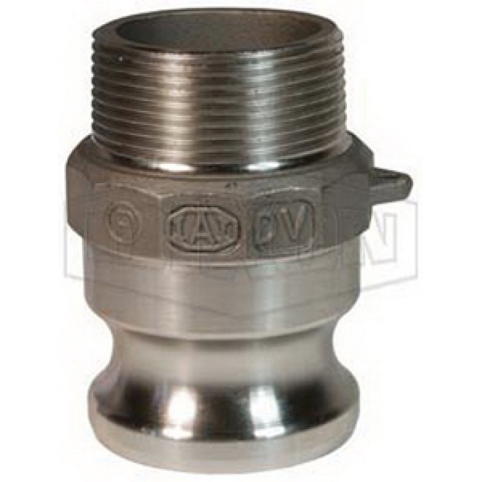 Dixon® Cam and Groove Type F Adapter, Connection Type 1: Fitting, Gender 1: Male, Connection Size 1: 1-1/2 in, Connection Type 2: NPT, Gender 2: Male, Connection Size 2: 1-1/2 in, Thread Size 2: 1-1/2-11-1/2, Hex Size: 2-1/4 in, 250 psi, Hastelloy®, Dimensions: 2-7/64 in Dia x 3-1/8 in L