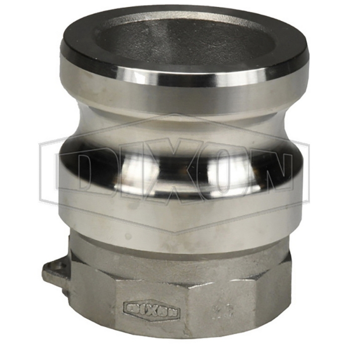 Dixon® Cam and Groove Type A Reducing Adapter, Connection Type 1: Fitting, Gender 1: Male, Connection Size 1: 2 in, Connection Type 2: NPT, Gender 2: Female, Connection Size 2: 1-1/2 in, Thread Size 2: 1-1/2-11-1/2, 250 psi, 316 Stainless Steel