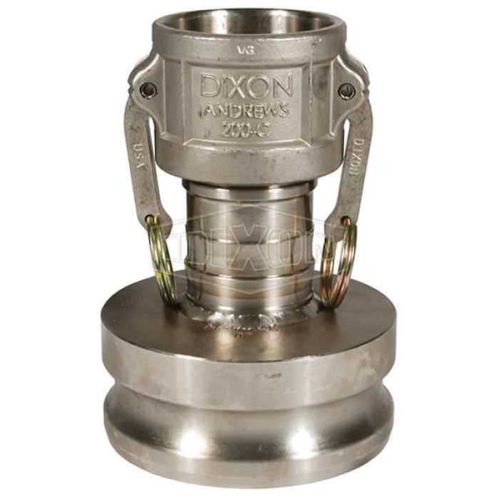 Dixon® Cam and Groove Type DA Jump Size Coupling, Connection Type 1: Fitting, Gender 1: Female, Connection Size 1: 2 in, Connection Type 2: Fitting, Gender 2: Male, Connection Size 2: 4 in, 100 psi, 316 Stainless Steel