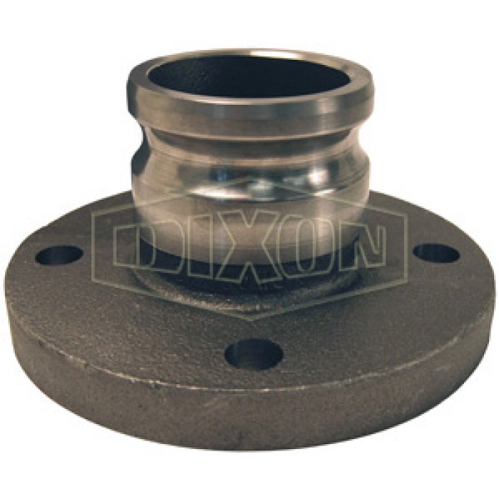 Dixon® Cam and Groove Adapter, Connection Type 1: Fitting, Gender 1: Male, Connection Size 1: 3 in, Connection Type 2: Flange, Connection Size 2: 3 in, 125 psi, Malleable Iron, Finish: Unplated, Dimensions: 7-1/2 in Dia x 3-1/4 in L, For Use With: #150 Flange