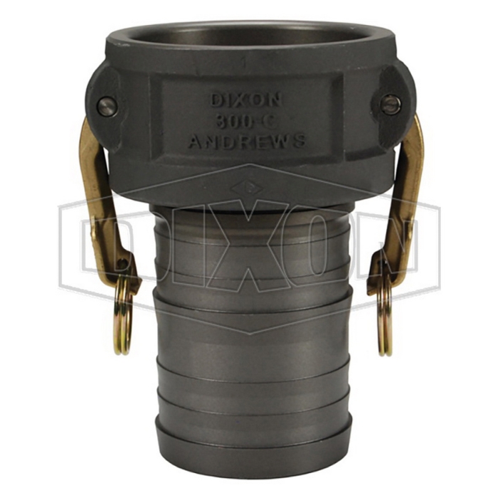 Dixon® Cam and Groove Type C Coupler, Connection Type 1: Fitting, Gender 1: Female, Connection Size 1: 4 in, Connection Type 2: Hose Stem, Connection Size 2: 4 in, 100 psi, Aluminum, Finish: Hard-Coated, Dimensions: 6-9/16 in L