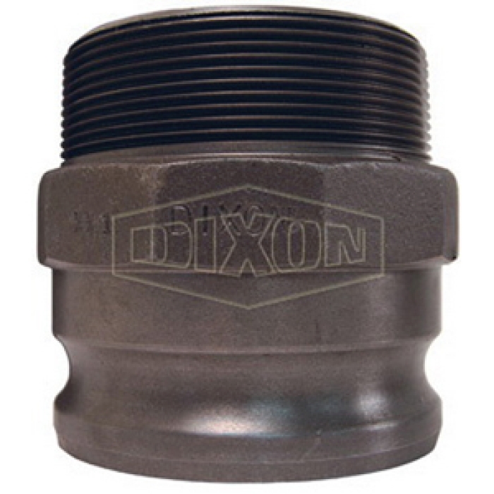 Dixon® Cam and Groove Type F Adapter, Connection Type 1: Fitting, Gender 1: Male, Connection Size 1: 4 in, Connection Type 2: NPT, Gender 2: Male, Connection Size 2: 4 in, Hex Size: 4-15/16 in, 100 psi, Malleable Iron, Finish: Unplated, Dimensions: 4-15/16 in L x 4-23/32 in W