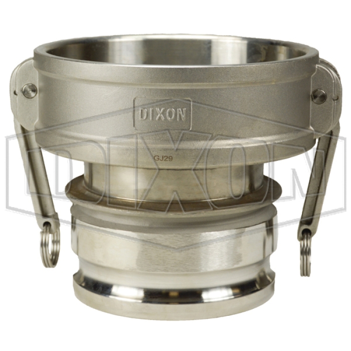 Dixon® Cam and Groove Type DA Jump Size Coupling, Connection Type 1: Fitting, Gender 1: Female, Connection Size 1: 6 in, Connection Type 2: Fitting, Gender 2: Male, Connection Size 2: 5 in, 75 psi, 316 Stainless Steel