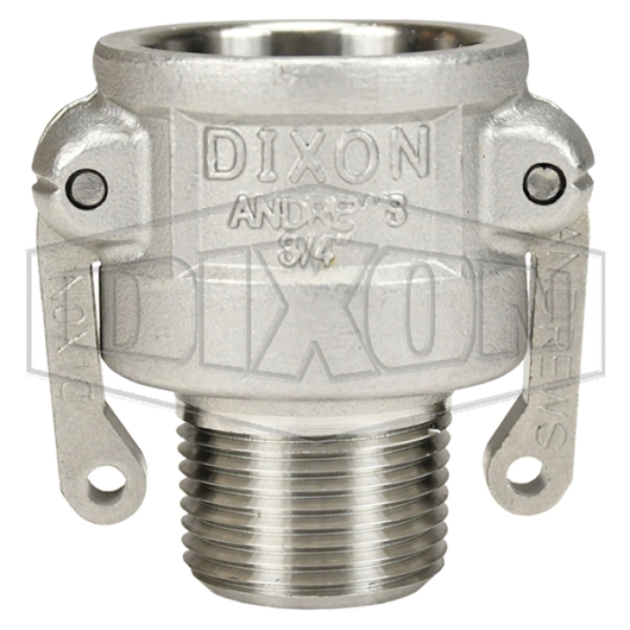 Dixon® Cam and Groove Type B Coupler, Connection Type 1: Fitting, Gender 1: Female, Connection Size 1: 3/4 in, Connection Type 2: NPT, Gender 2: Male, Connection Size 2: 3/4 in, Thread Size 2: 3/4-14, 250 psi, 316 Stainless Steel, Dimensions: 1-5/8 in Dia x 2-1/8 in L