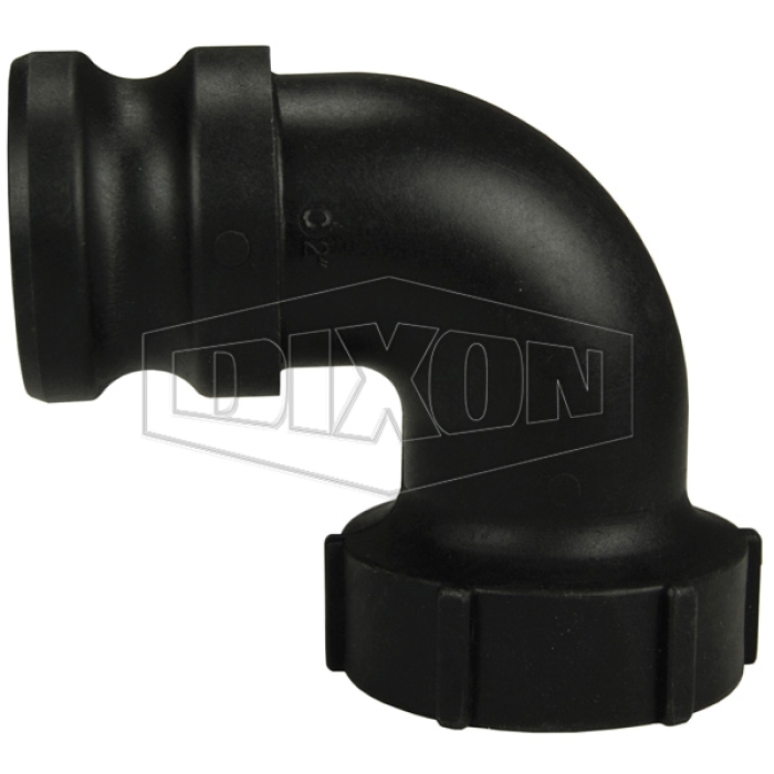 Dixon® Cam and Groove Type A 90 deg Elbow, Connection Type 1: Fitting, Gender 1: Male, Connection Size 1: 1-1/2 in, Connection Type 2: NPT, Gender 2: Female, Connection Size 2: 1-1/2 in, Thread Size 2: 1-1/2-11-1/2, 100 psi, Polypropylene