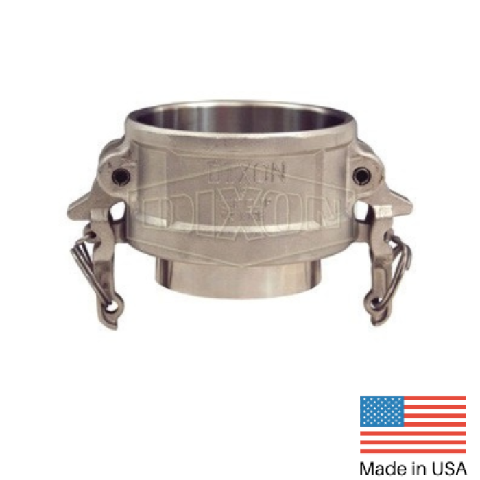 Dixon® Boss-Lock™ Cam and Groove Coupler, Connection Type 1: Fitting, Gender 1: Female, Connection Size 1: 1 in, Connection Type 2: Butt Weld, Connection Size 2: 1 in, 316 Stainless Steel, Dimensions: 1-7/8 in Dia x 2-5/32 in L, For Use With: Tube End