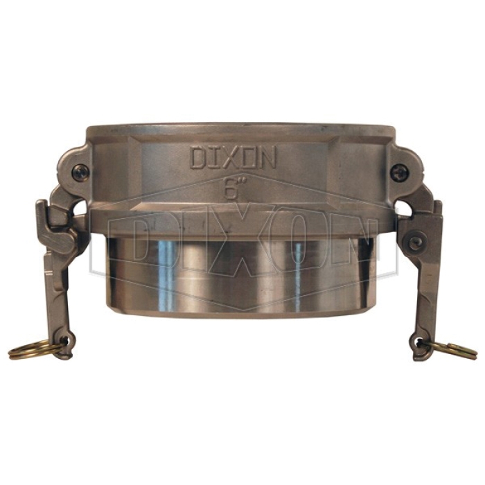 Dixon® EZ Boss-Lock™ Cam and Groove Coupler, Connection Type 1: Fitting, Gender 1: Female, Connection Size 1: 6 in, Connection Type 2: Butt Weld/Socket Weld, Connection Size 2: 6 in, 75 psi, 316 Stainless Steel, Dimensions: 7-35/64 in Dia x 4-35/64 in L, For Use With: SCH 40 Pipe or Nominal Tubing