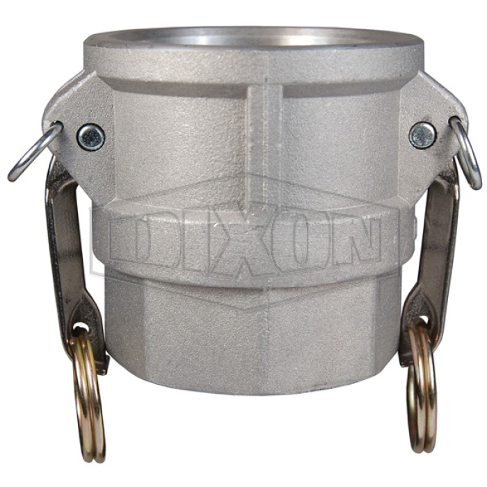 Dixon® Global Cam and Groove Type D Coupler, Connection Type 1: Fitting, Gender 1: Female, Connection Size 1: 1 in, Connection Type 2: NPT, Gender 2: Female, Connection Size 2: 1 in, Thread Size 2: 1-11-1/2, 250 psi, Aluminum, Dimensions: 1-31/32 in L x 2 in W