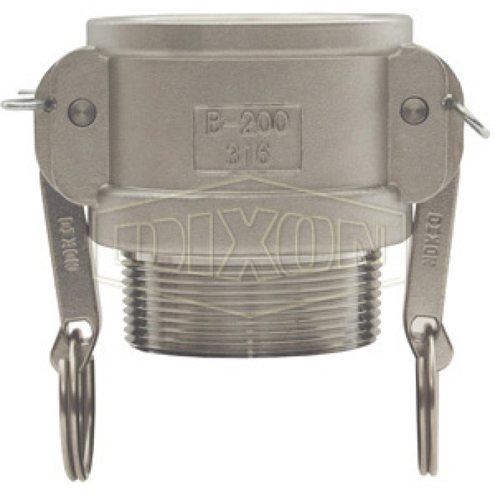 Dixon® Global Cam and Groove Type B Coupler, Connection Type 1: Fitting, Gender 1: Female, Connection Size 1: 4 in, Connection Type 2: NPT, Gender 2: Male, Connection Size 2: 4 in, Thread Size 2: 4-8, 100 psi, 316 Stainless Steel, Dimensions: 5-13/32 in Dia x 3-19/32 in L