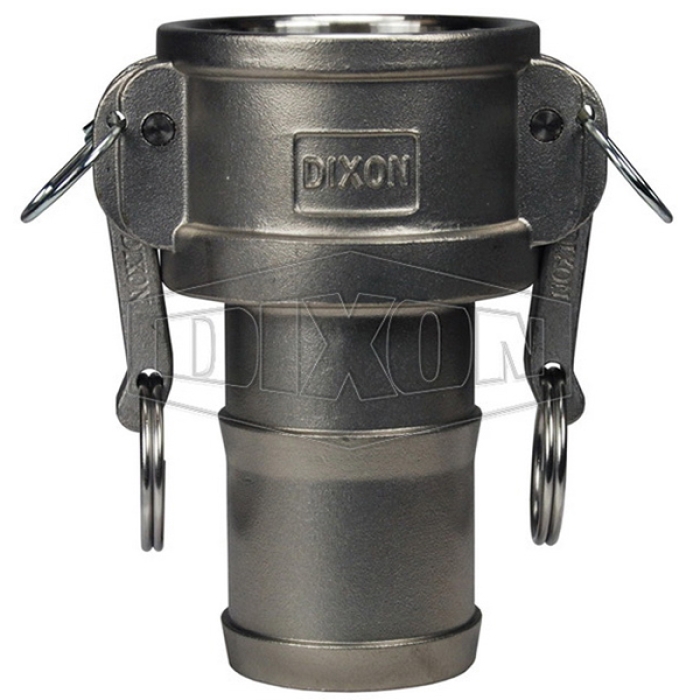 Dixon® Global Cam and Groove Type C Coupler, Connection Type 1: Fitting, Gender 1: Female, Connection Size 1: 1/2 in, Connection Type 2: Hose Stem, Connection Size 2: 1/2 in, 150 psi, 316 Stainless Steel, Dimensions: 3-15/32 in L x 2-1/16 in W