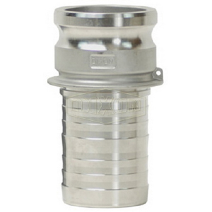 Dixon® King Crimp™ Global Crimp Style Cam and Groove Type E Adapter, Connection Type 1: Fitting, Gender 1: Male, Connection Size 1: 2 in, Connection Type 2: Hose Stem, Connection Size 2: 2 in, 250 psi, 316 Stainless Steel, Dimensions: 2-15/32 in Dia x 5-27/32 in L, For Use With: King Crimp™ Sleeves and Ferrules