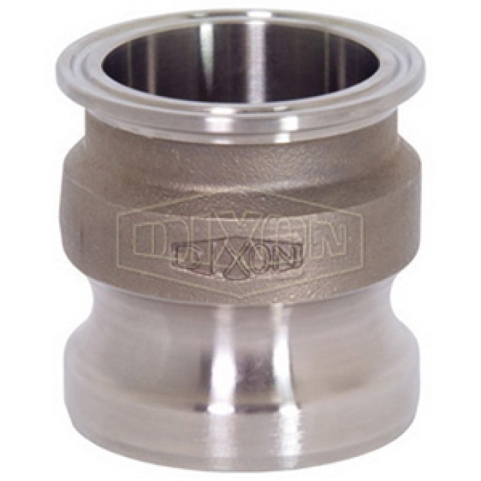 Dixon® Cam and Groove Adapter, Connection Type 1: Fitting, Gender 1: Male, Connection Size 1: 3 in, Connection Type 2: Clamp, Connection Size 2: 3 in, 316 Stainless Steel, Dimensions: 3-19/32 in Dia x 2-11/16 in L