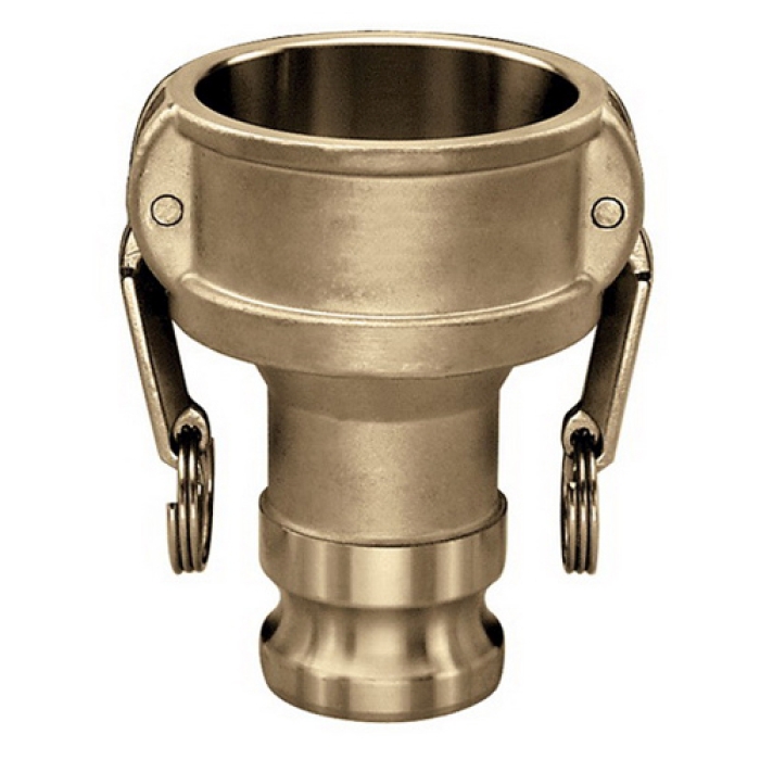 Kuriyama Cam and Groove Reducing Coupler, Connection Type 1: Fitting, Gender 1: Female, Connection Size 1: 3 in, Connection Type 2: Fitting, Gender 2: Male, Connection Size 2: 2 in, 150 psi, Brass, 70 deg F