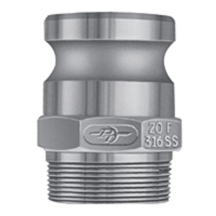 PT® Cam and Groove Type F Adapter, Connection Type 1: Fitting, Gender 1: Male, Connection Size 1: 2-1/2 in, Connection Type 2: NPT, Gender 2: Male, Connection Size 2: 2-1/2 in, 200 psi, Stainless Steel, Dimensions: 4.18 in L, -150 deg F
