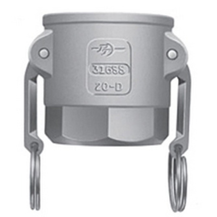 PT Coupling Cam and Groove Type D Coupler, Connection Type 1: Fitting, Gender 1: Female, Connection Size 1: 1-1/2 in, Connection Type 2: NPT, Gender 2: Female, Connection Size 2: 1-1/2 in, 100 psi, Polypropylene, Black, Dimensions: 3.56 in OD x 2.8 in L
