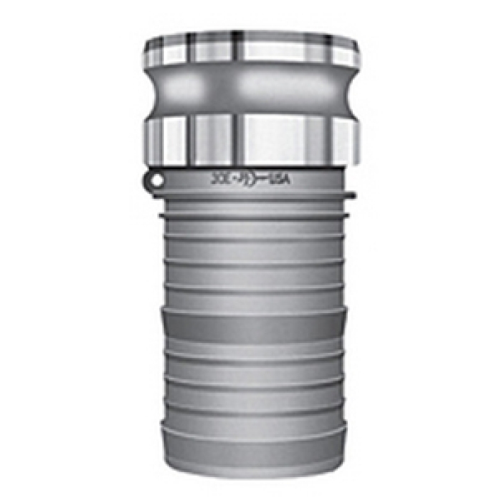 PT Coupling Cam and Groove Type E Adapter, Connection Type 1: Fitting, Gender 1: Male, Connection Size 1: 1-1/4 in, Connection Type 2: Hose Stem, Connection Size 2: 1-1/4 in, 100 psi, Polypropylene, Black, Dimensions: 2 in OD x 4.9 in L