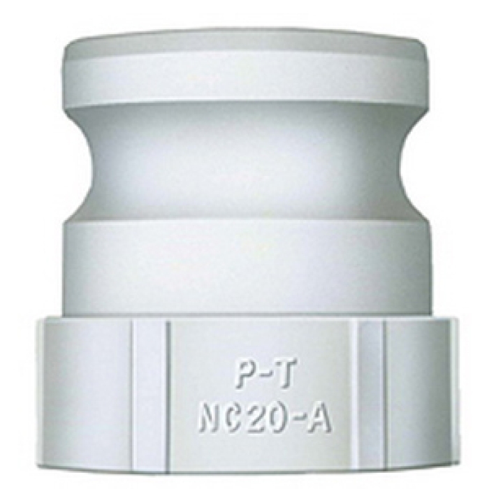PT Coupling Cam and Groove Type A Adapter, Connection Type 1: Fitting, Gender 1: Male, Connection Size 1: 2 in, Connection Type 2: NPT, Gender 2: Female, Connection Size 2: 2 in, 100 psi, Food Grade Polypropylene, White, Dimensions: 2.54 in L x 2.92 in W