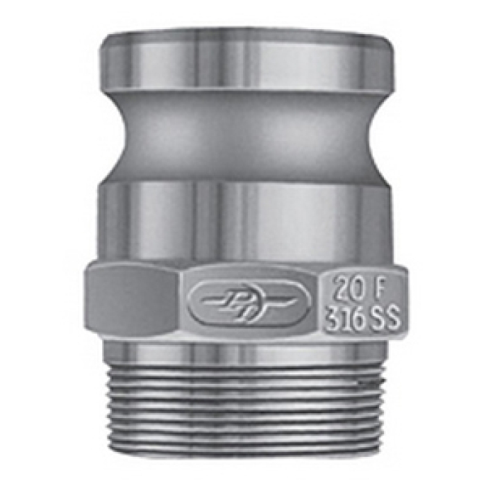 PT Coupling Cam and Groove Type F Adapter, Connection Type 1: Fitting, Gender 1: Male, Connection Size 1: 1 in, Connection Type 2: NPT, Gender 2: Male, Connection Size 2: 1 in, 100 psi, Food Grade Polypropylene, White, Dimensions: 2.89 in L x 1.75 in W