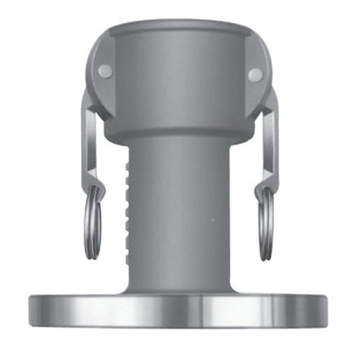 PT Coupling Cam and Groove PFC Pipe Flange, Connection Type 1: Fitting, Connection Size 1: 4 in, Connection Type 2: Flange, Connection Size 2: 4 in, 150 psi, Aluminum/HBS, Dimensions: 5.39 in L, Dimension Standards: ANSI B16.5 Class 150, -150 deg F