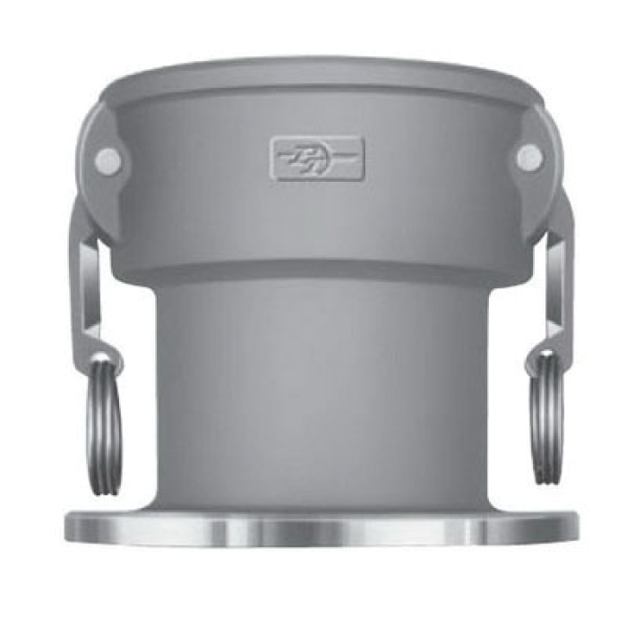 PT Coupling Cam Flange Coupler, Connection Type 1: Fitting, Gender 1: Female, Connection Size 1: 6 in, Connection Type 2: Flange, Connection Size 2: 6 in, Aluminum, Dimensions: 5.6 in ID x 8.88 in OD x 7-1/4 in L