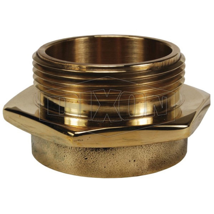 Dixon® Open Snoot Single Outlet Adapter with Hex, Connection Type 1: NPT, Gender 1: Female, Connection Size 1: 3 in, Connection Type 2: NST/NH, Gender 2: Male, Connection Size 2: 2-1/2 in, Cast Brass, Finish: Polished